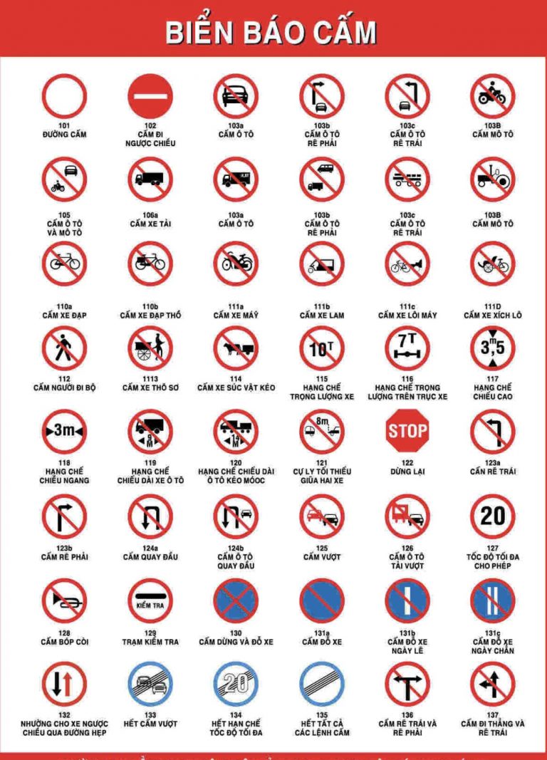 Tổng hợp các biển báo cấm mới nhất