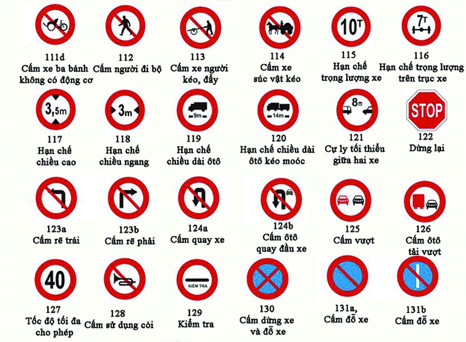 Biển báo cấm 131a: Cấm đỗ xe: Cho biết đây là nơi cấm các xe cơ giới đỗ xe, chỉ trừ các phương tiện được ưu tiên theo luật quy định.